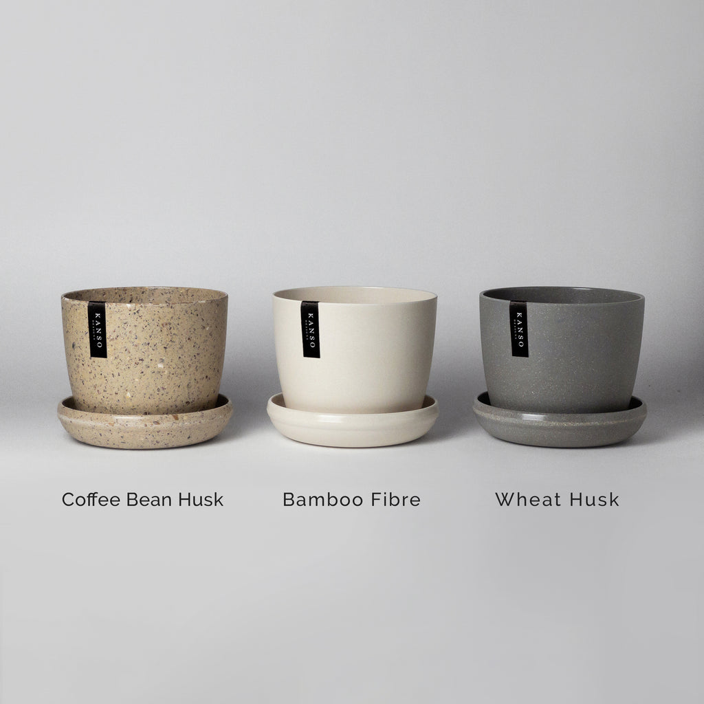 Made with agricultural byproducts & our patented mix of recycled materials to create durable, lightweight & porous plant pots.
