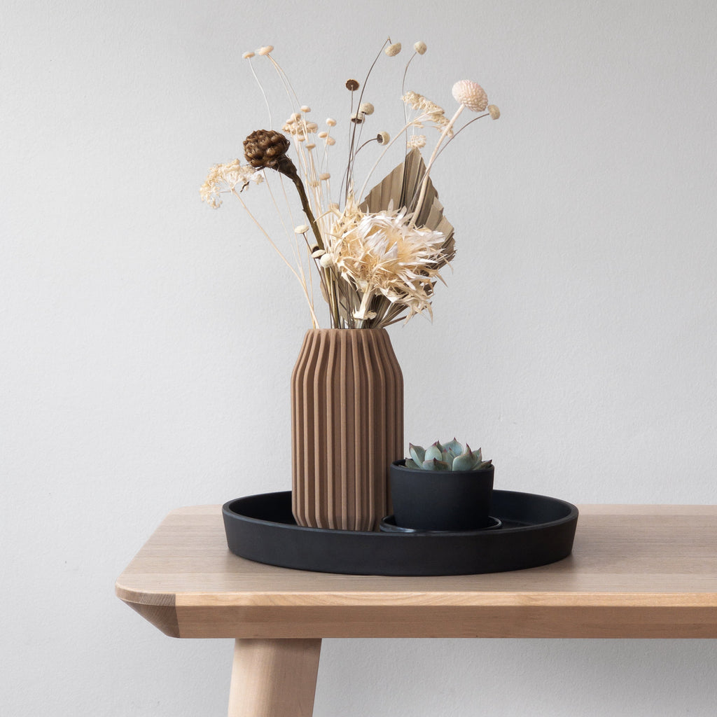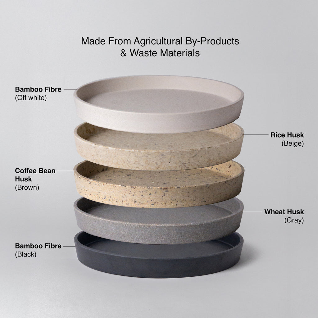 Made with agricultural byproducts & our patented mix of recycled materials to create durable, lightweight & porous plant pots.