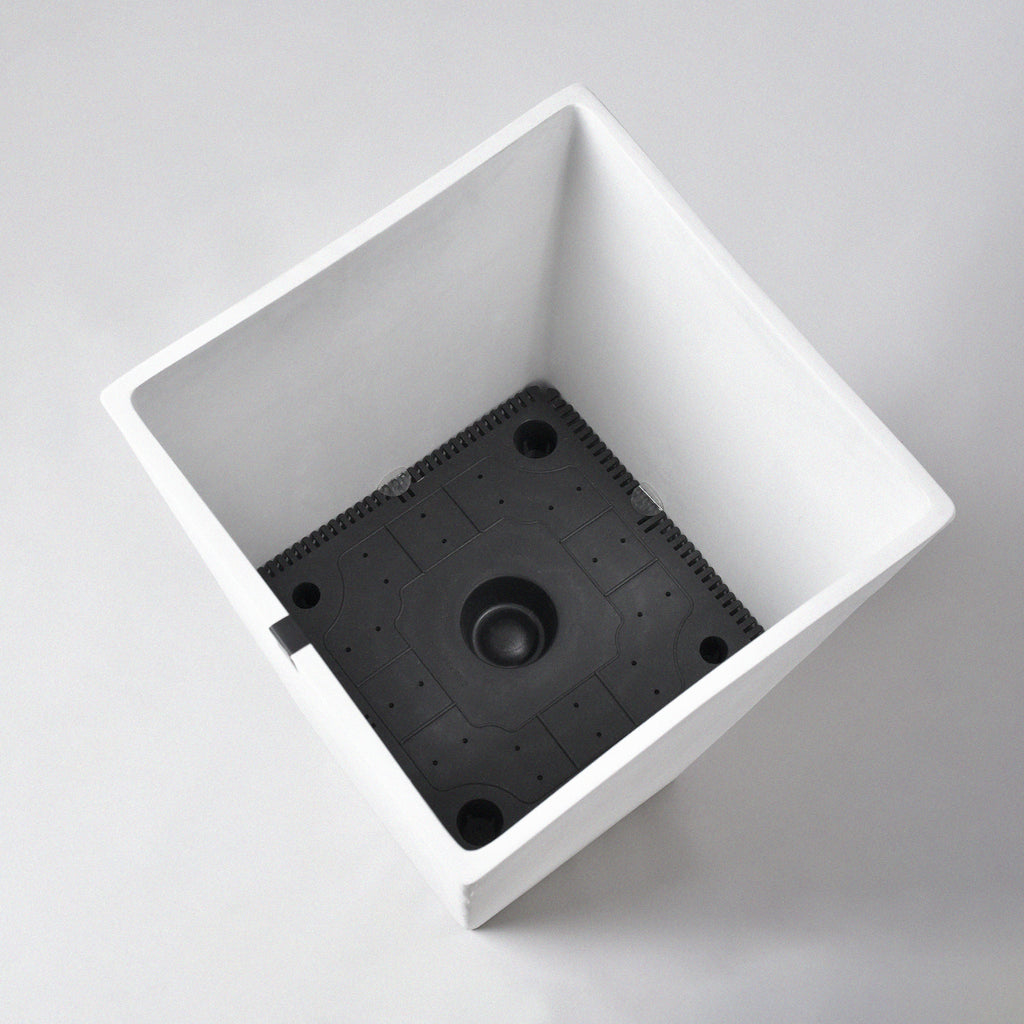 Offered in two timeless finishes—White Stone or Black Stone—each piece is designed for longevity and includes a drainage hole for plant health, and an insert to prevent drainage if preferred. This planter was intentionally designed without a saucer for ease and function in outdoor spaces.